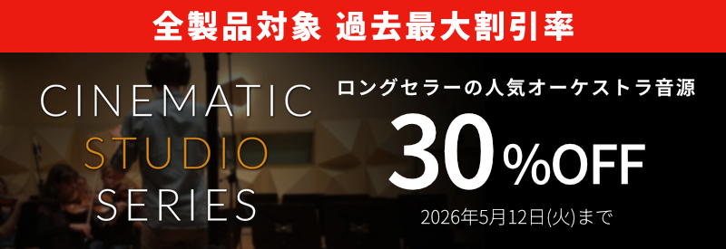 最高級オーケストラ音源や、定番ドラム音源から、シネマティック音源まで、様々なソフトウェア音源をラインアップ。