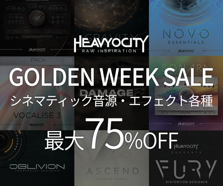 【HEAVYOCITY】ゴールデンウィークセール!シネマティック音源 / エフェクト最大75%OFF!
