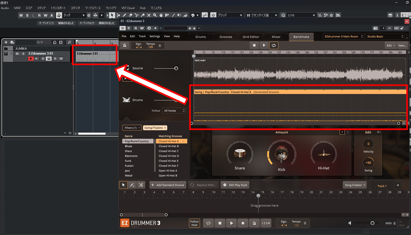 気に入ったパターンを見つけたら、あとはDAWソフトのトラックにドラッグ&ドロップするだけ!