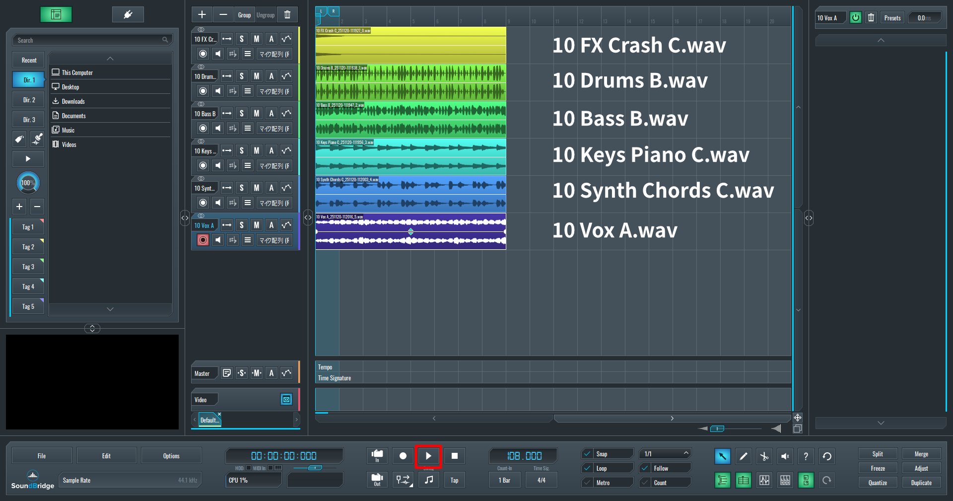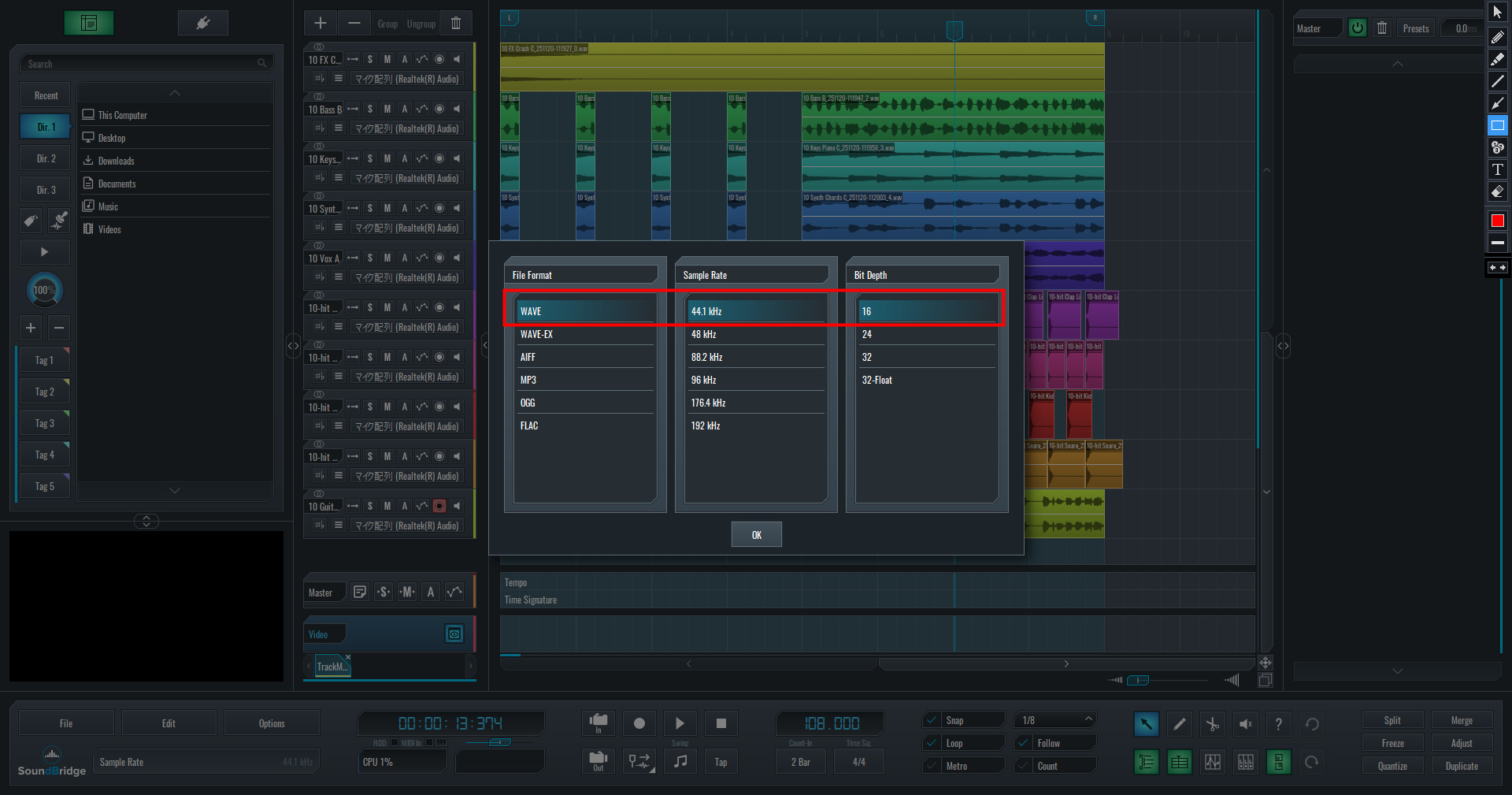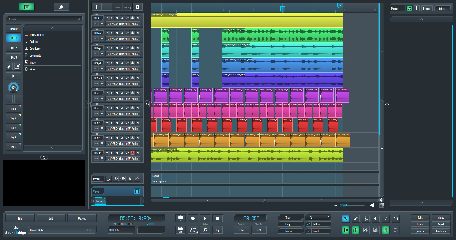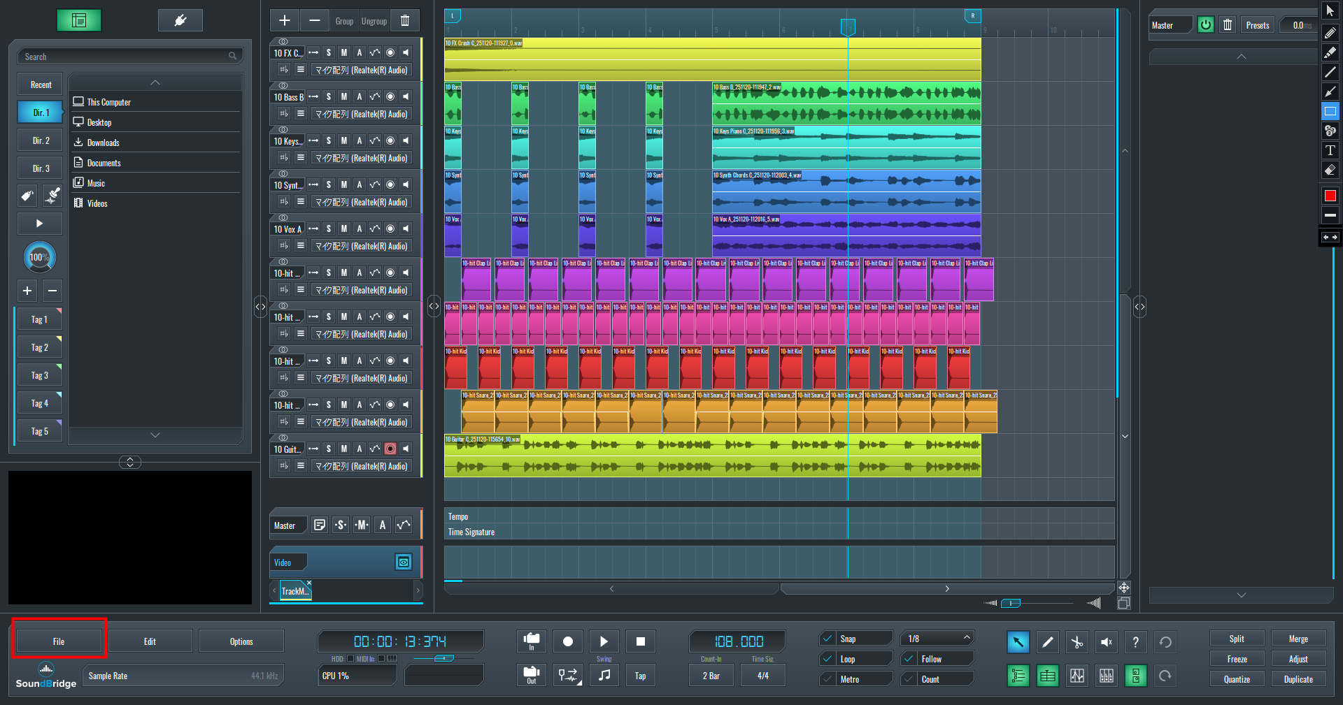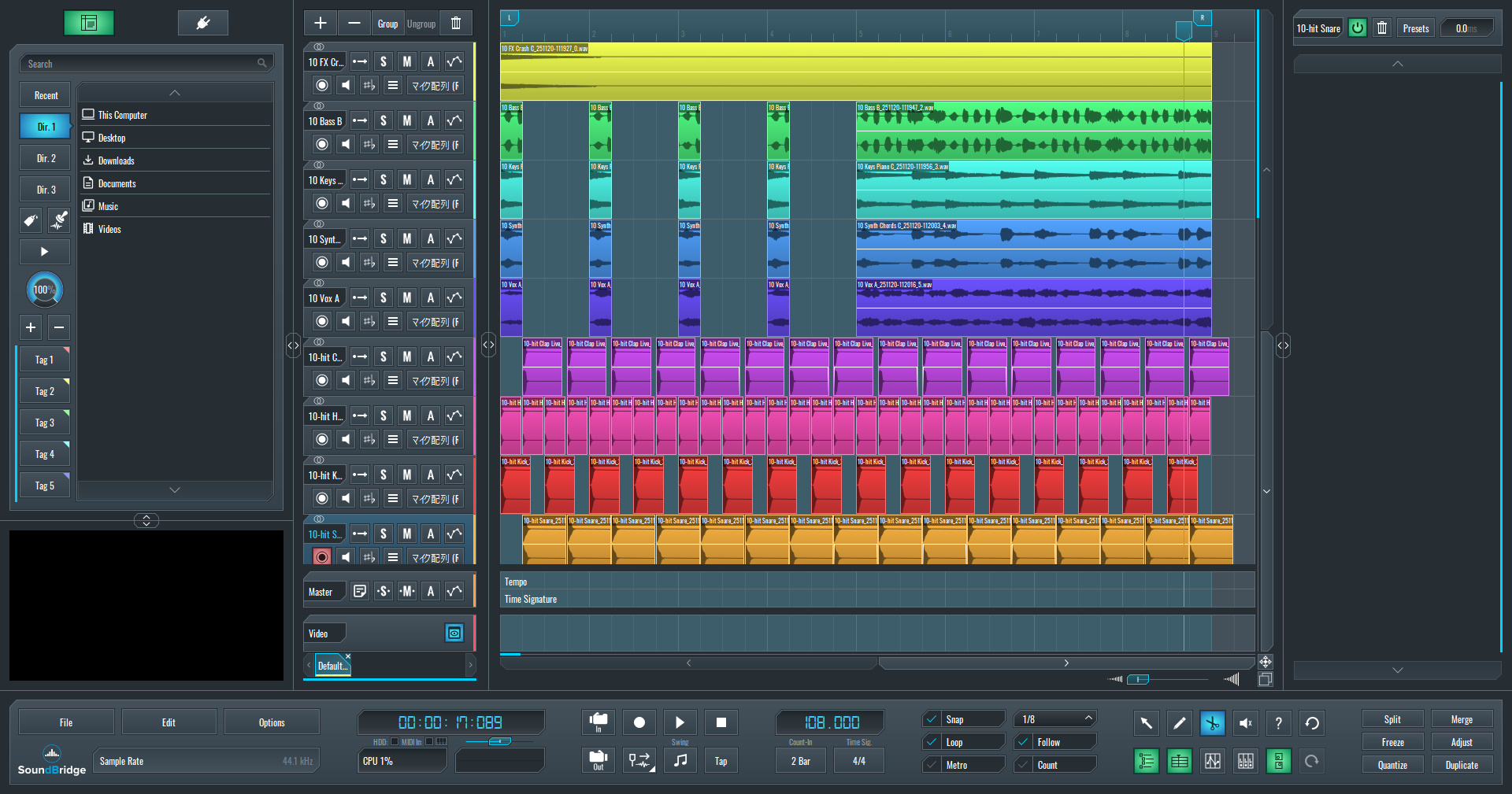 『SoundBridge』は、オーディオサンプルのカットや配置、コピペといった「組み立て作業」が非常に直感的に行えるDAWです。