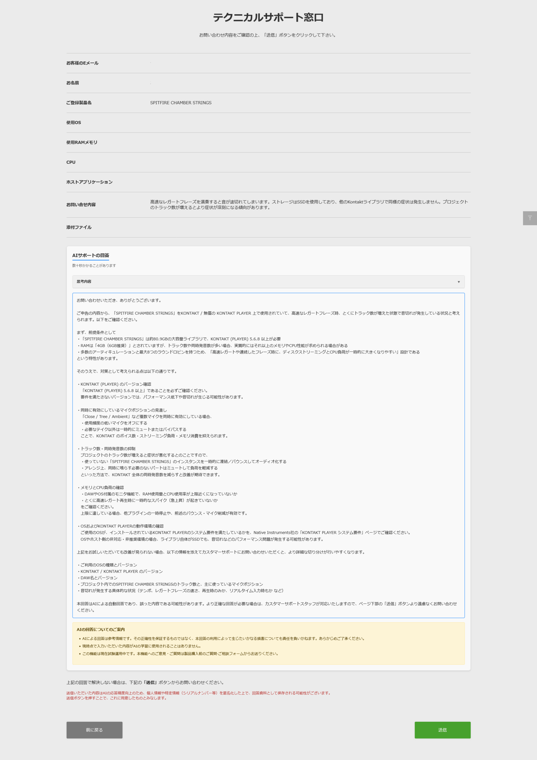 ※テクニカルサポート窓口は「購入済み製品」のご相談用フォームです(ログインが必要です)。「製品購入前のご質問・ご相談」は、AIサポートご提供の対象外となります。