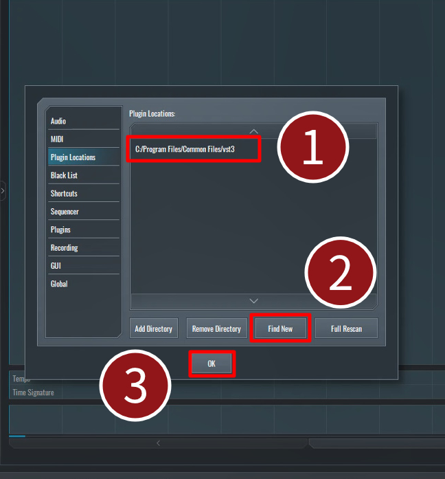 - ① リストに [ C:\Program Files\Common Files\vst3 ] が追加されたことを確認します。