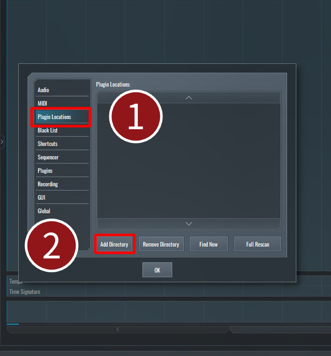 - ① 左側のメニューから [ Plugin Locations ] を選択します。