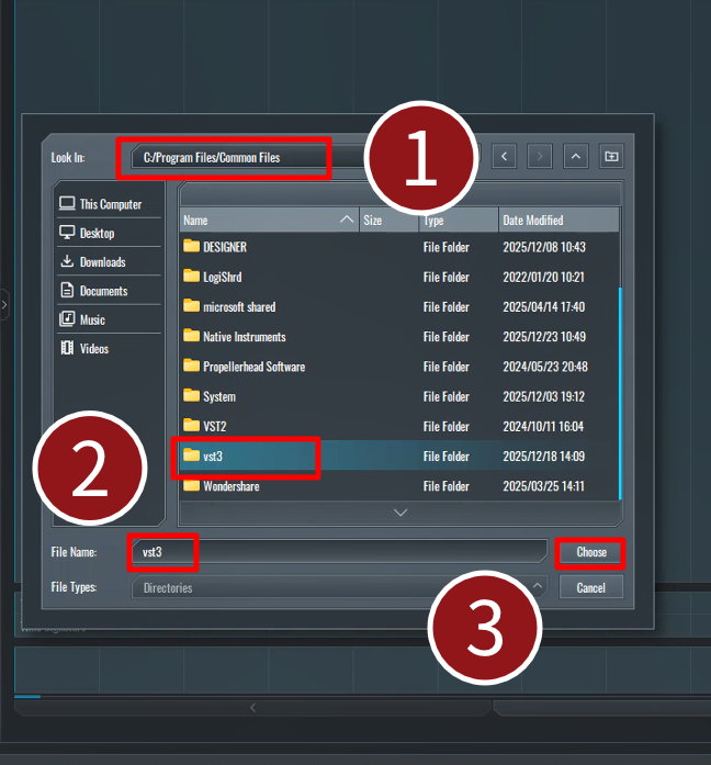 - ② 一覧から「vst3」フォルダを選択(クリック)します。