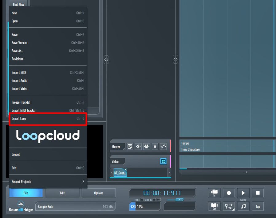 画面左下の [ File ] をクリックし、メニューから [ Export Loop ] を選択します。