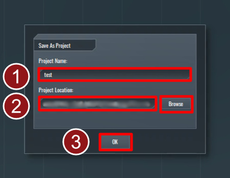 - ② Project Location:作業内容を保存する好きな場所を指定できます。[ Browse ] ボタンからお好みの場所(デスクトップなど)を選択しましょう。