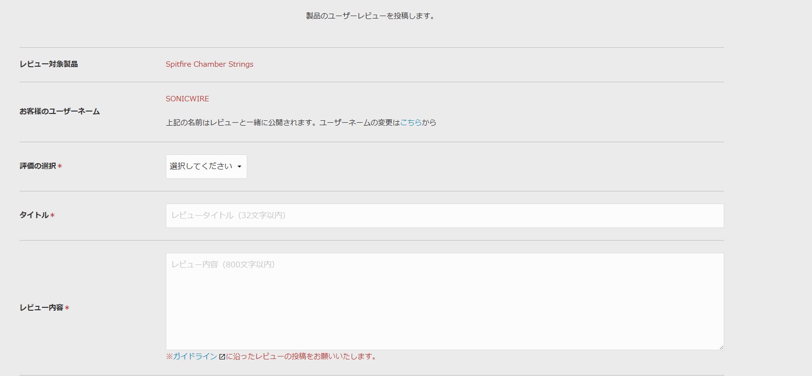 ※初めてレビュー投稿をする方は、ユーザーネームの設定画面が表示されます。お好きなユーザーネームを設定の上、続けてレビューを投稿ください。