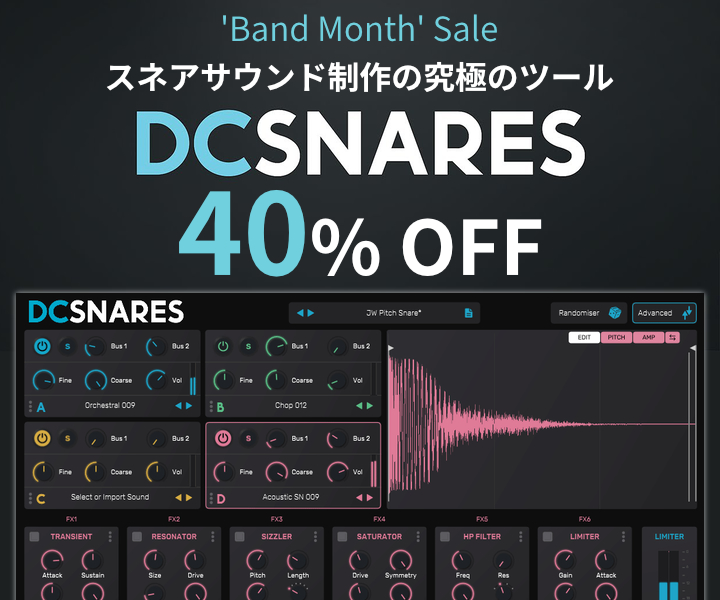 【SCALER MUSIC】スネアサウンド制作の究極のツール『DC SNARES』が40%OFF!
