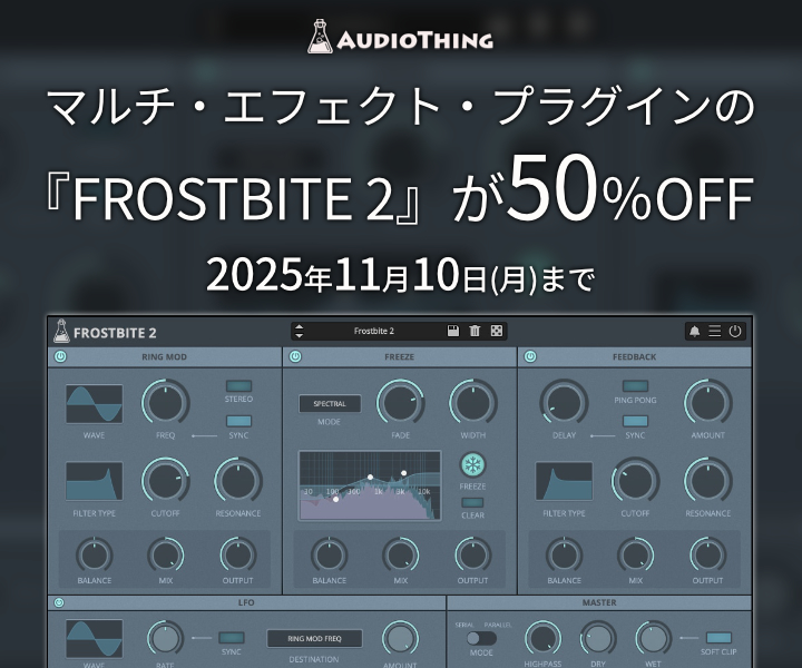 【AudioThing】マルチ・エフェクト・プラグインの『FROSTBITE 2』が50%OFF!