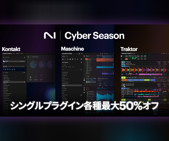 Native Instruments Cyber Season シングルプラグインが最大50%OFF!