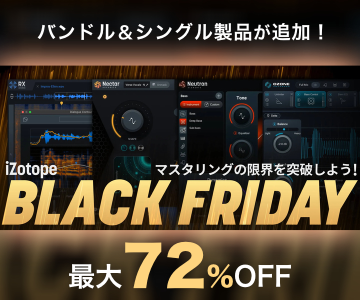 【製品追加!】iZotope Black Friday 対象の製品が最大72%OFF