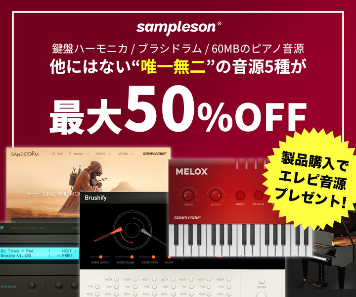 【製品購入でエレピ音源プレゼント】唯一無二のサウンドを奏でる、Sampleson社製品が最大半額!