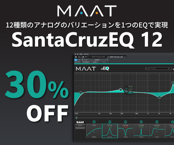 【MAAT】12種類のアナログのバリエーションを1つのEQで実現する『SANTACRUZEQ12』が30%OFF!