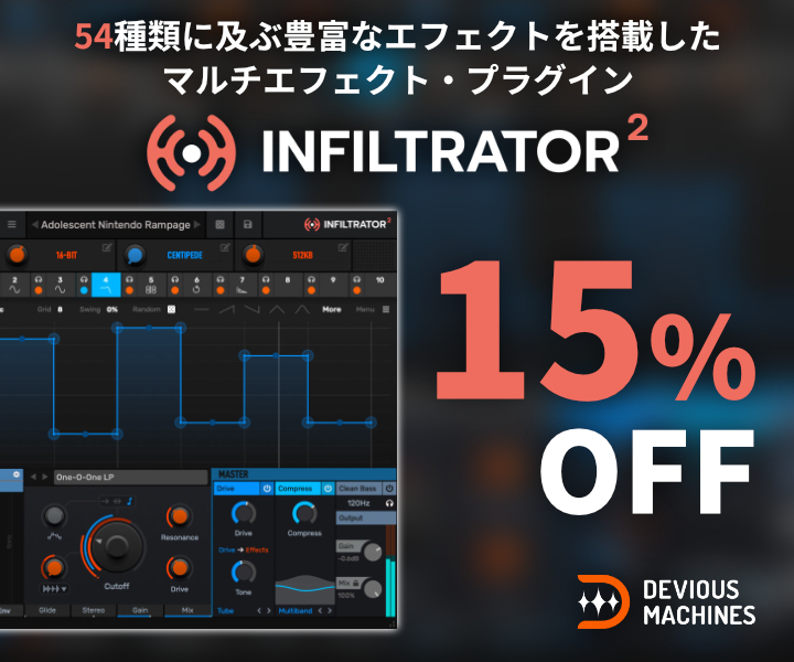 54種類に及ぶ豊富なエフェクトを搭載したマルチエフェクト『INFILTRATOR 2』が15%OFF!