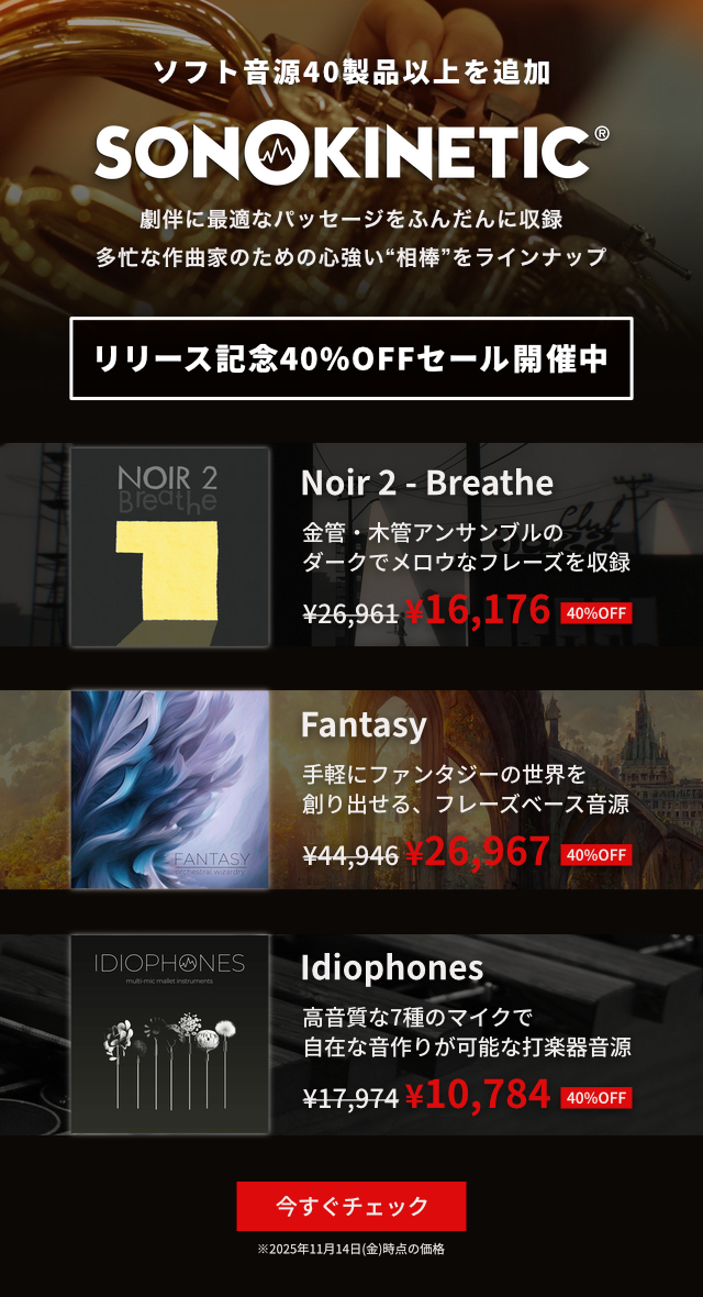 【最大50%OFF】Sonora Cinematicブラックフライデーセール!良質なテクスチャ音源が特価中! - 2025.12.03まで