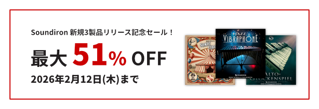 【最大51%OFF】Soundiron 新規3製品リリース記念セール! - 2026.02.12まで