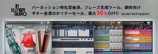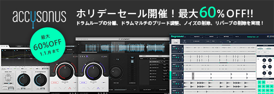 一部メーカーのホリデー/ウィンターセールがスタート!ドラムループ分離やブリード調整などを実現するACCUSONUS製品、新定番となる打楽器音源を展開するIN SESSION AUDIOなどがお買い得!来週以降も新たなセールを追加予定となっていますので、どうぞお見逃しなく! |