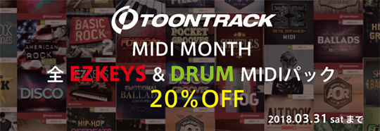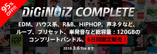 今週も、サンプルパック191製品バンドルの95%OFFや、効果音ライブラリのセール、TOONTRACKのMIDIパック 20%OFFといった魅力的なセールが続々到着! | |||||||||||||||||