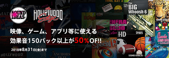 ![]() 厳選「効果音パック」が50%OFF! - 2018.08.31まで | ||||