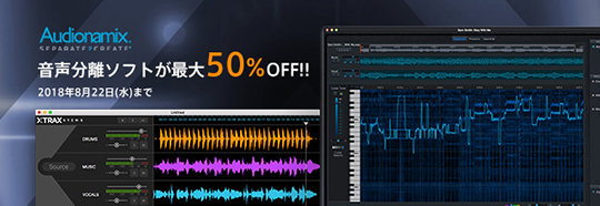 ![]() Audionamixの音声分離ソフトが最大50%OFF!! - 2018.08.22まで | |||