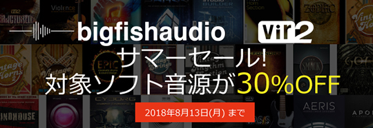 ![]() BIG FISH AUDIO / VIR2 サマーセール!対象ソフト音源が30%OFF! - 2018.08.13まで | |||