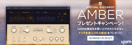 ![]() 【日本限定セール!】UJAM社製品お買上げで、お手軽アコギ音源『VIRTUAL GUITARIST - AMBER』プレゼント! - 2020.08.30まで | ||