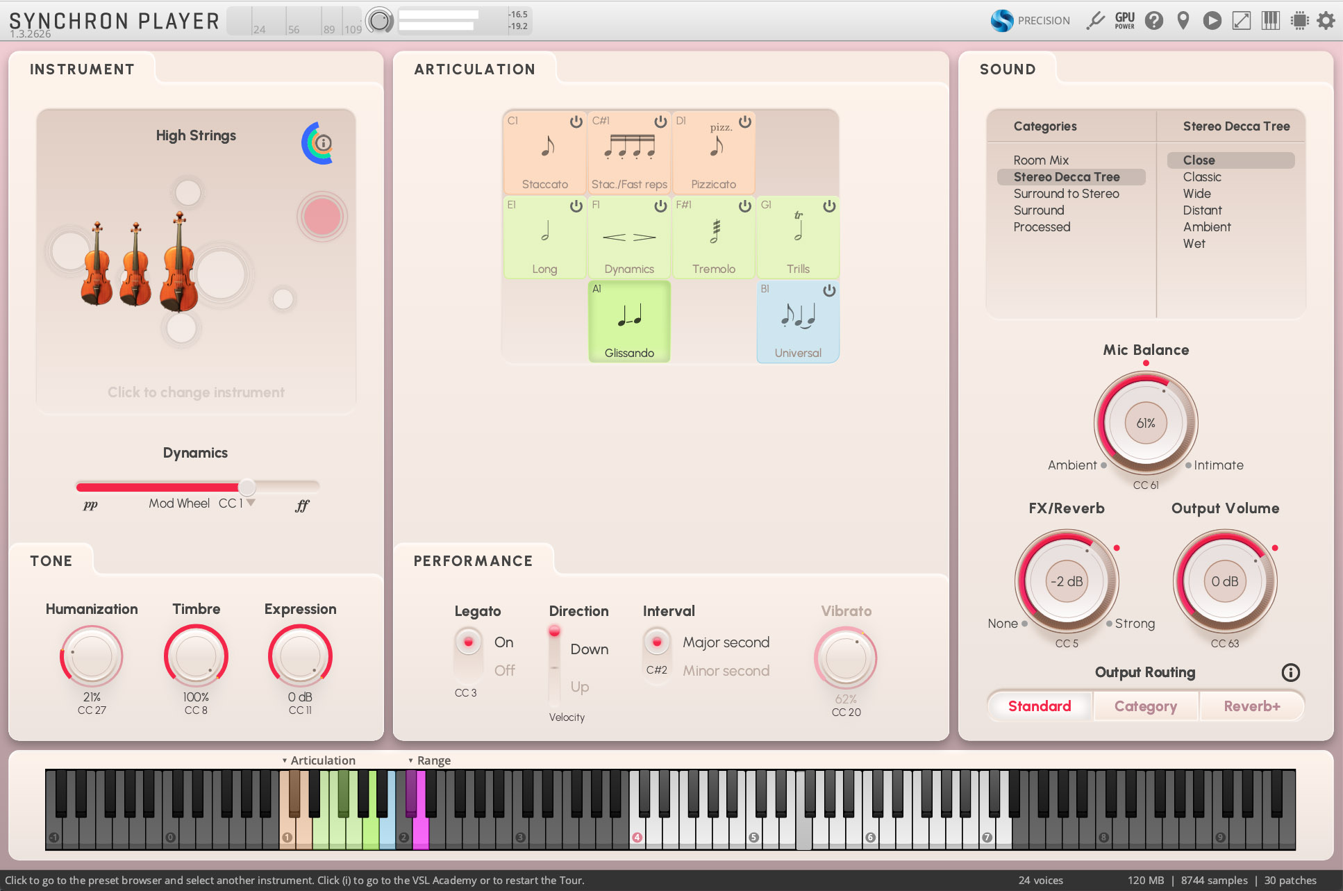 High Stringsパッチは、ウィーンのトッププレイヤーによる優雅な演奏を収録しています。