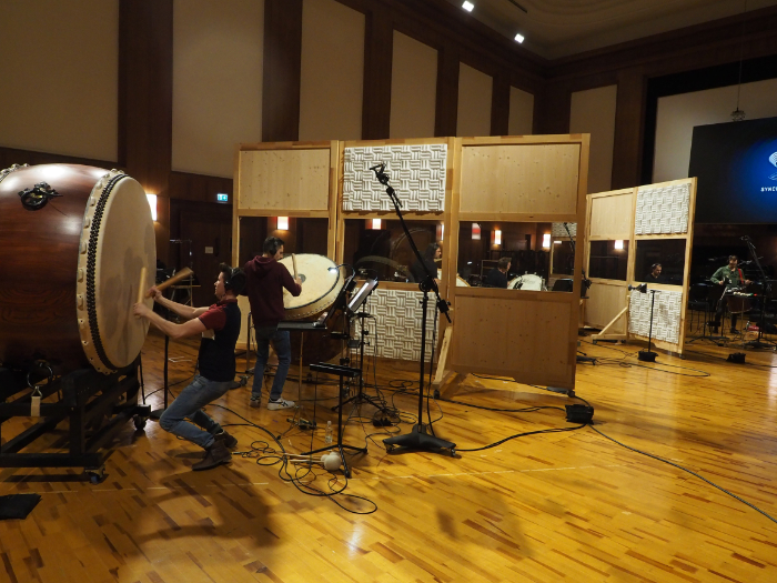 このユニークなアンサンブルも最大6名で同時演奏され、3台のコンサート・グランドピアノ(Steinway D-274/Bösendörfer Imperial/Yamaha CFX)のパワーを、プレートベル、チューブラーベル、ビブラフォン、ゴング、ティンパニ、太鼓などと組み合わせています。