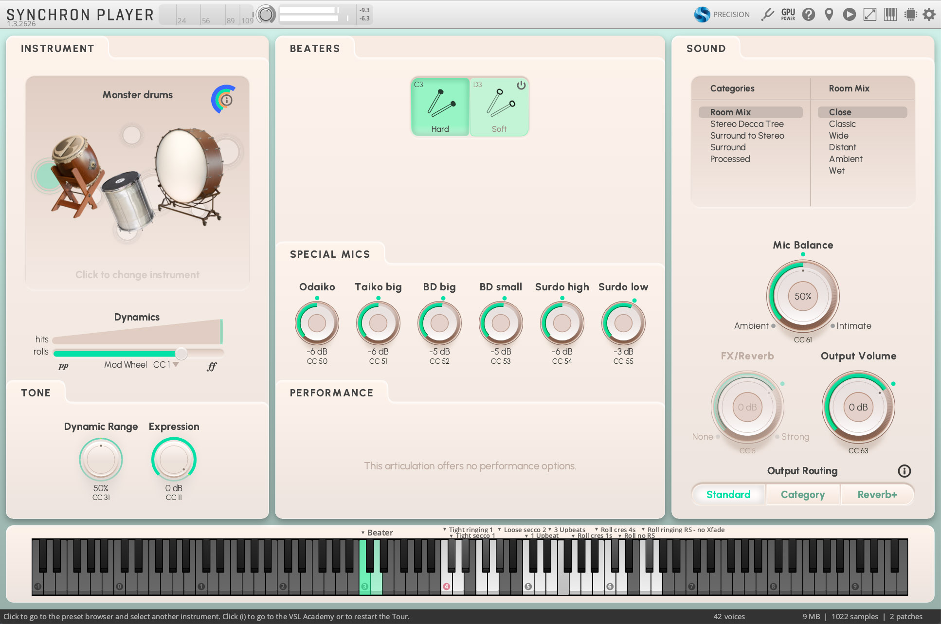 すべての楽器は、左・中央・右の3ポジションで複数マイクにより同時収録され、Synchron Player内で柔軟な音作りが可能。