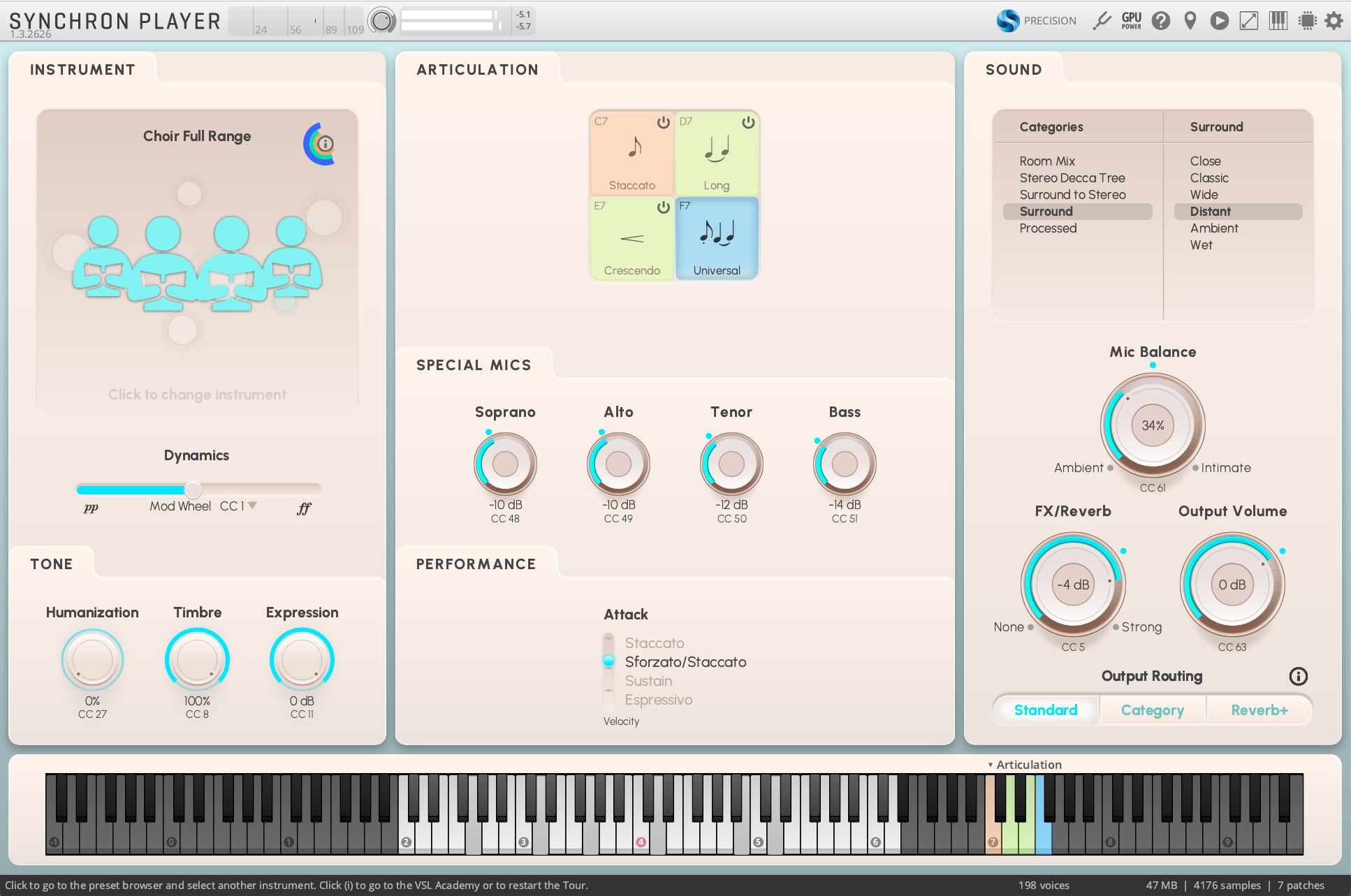 トゥッティおよびSATB(ソプラノ、アルト、テナー、バス)パッチには、各セクションの個別パッチに加え、すぐに使える複数のトゥッティ・コンビネーションも収録されています。