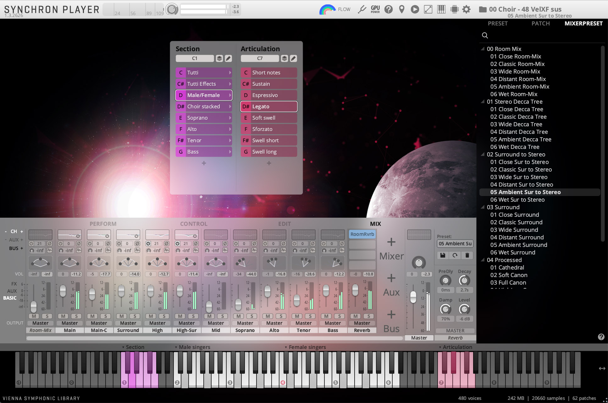 利用可能な全てのルーム・マイクをミックスして作成した「ルーム・ミックス」をベースにしています。これにより、CPU負荷を抑えつつも印象的なサウンドを実現し、あらゆるデバイス環境でオーケストラのアイデアを形にする手助けをします。