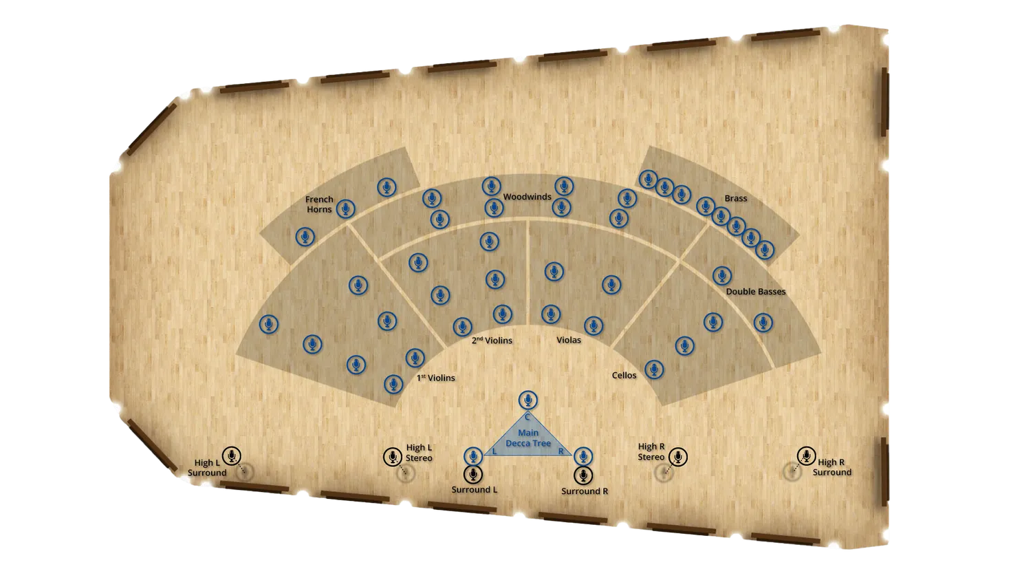 この4つのスピーカー(いわゆる「高さ」)は、フロント・スピーカーとサラウンド・スピーカーの上に位置し、聞き手の水平軸上における周囲だけでなく、上からも音を発することで、自然な知覚と音響反射をもたらします。