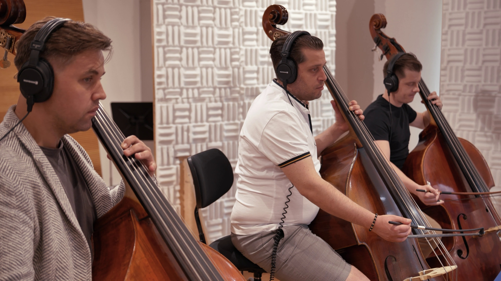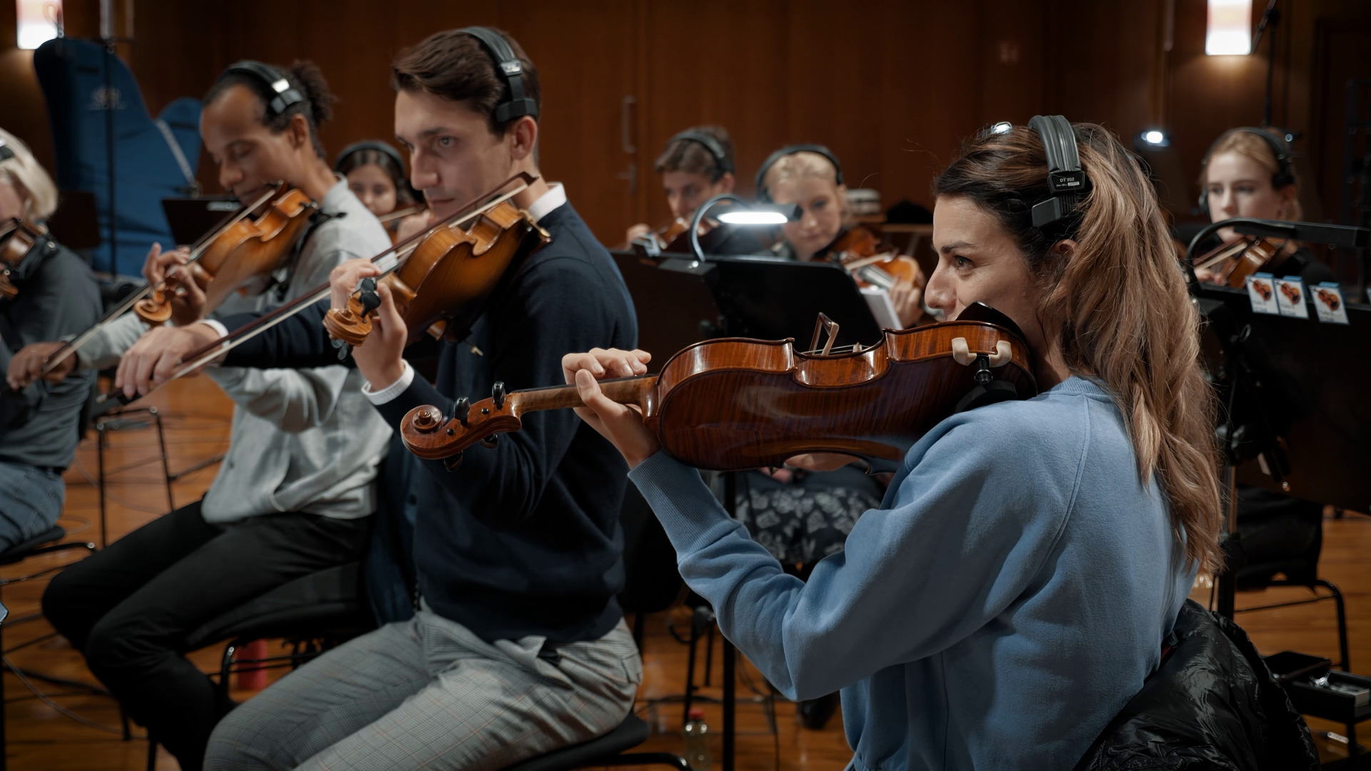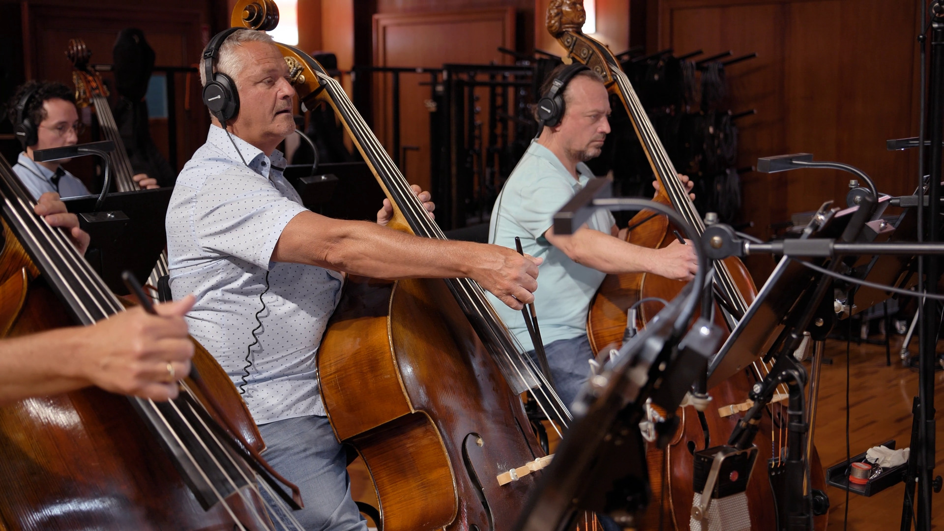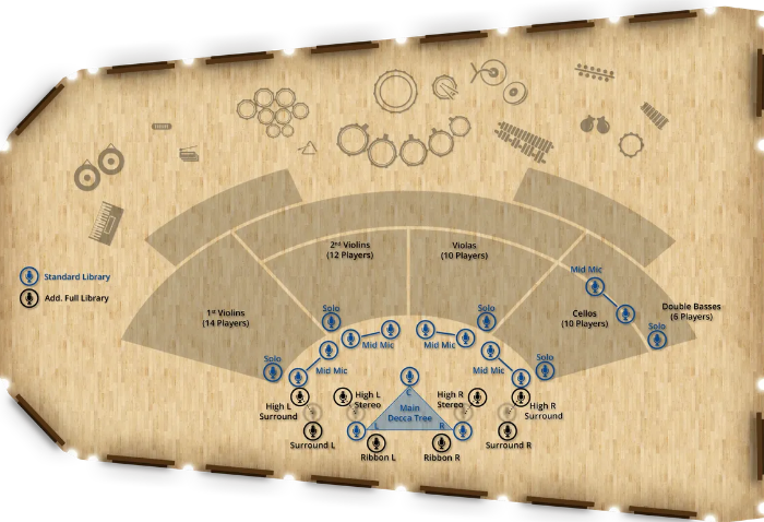 大ホール「Stage A」と、ドライな「Stage B」で同時収録されたサウンドを自由にミックス可能です。両セクションの奏者はモニター越しに指揮を共有し、互いの音を聴きながら完全に同期して演奏しています。