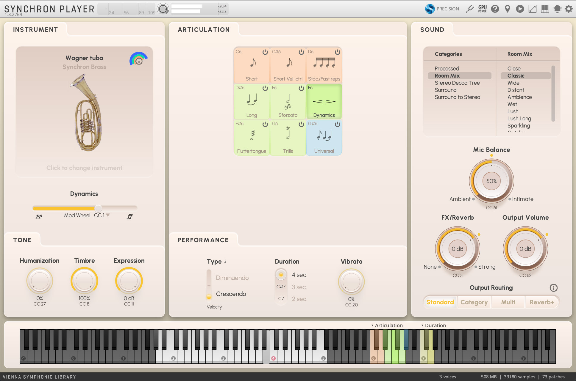 『Synchron Wagner Tuba』は、ホルンとチューバの音色をつなぎ、オーケストラの金管セクションに英雄的な深みと温かさを加え、気高く豊かな響きを持つワーグナー・チューバ音源です。