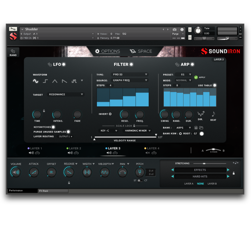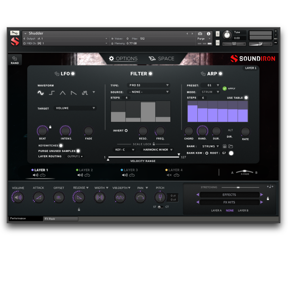 『SHUDDER』は、独特な歪みと破壊的な質感を持った、悪夢のようなパーカッシブ・サンプル553種類を収録したコレクションです。ホラー映画のサウンドトラックやダークなエレクトロニック・トラックの制作に不可欠な、オーガニックFX、スティンガー、ライザー、ドローン等を網羅しています。