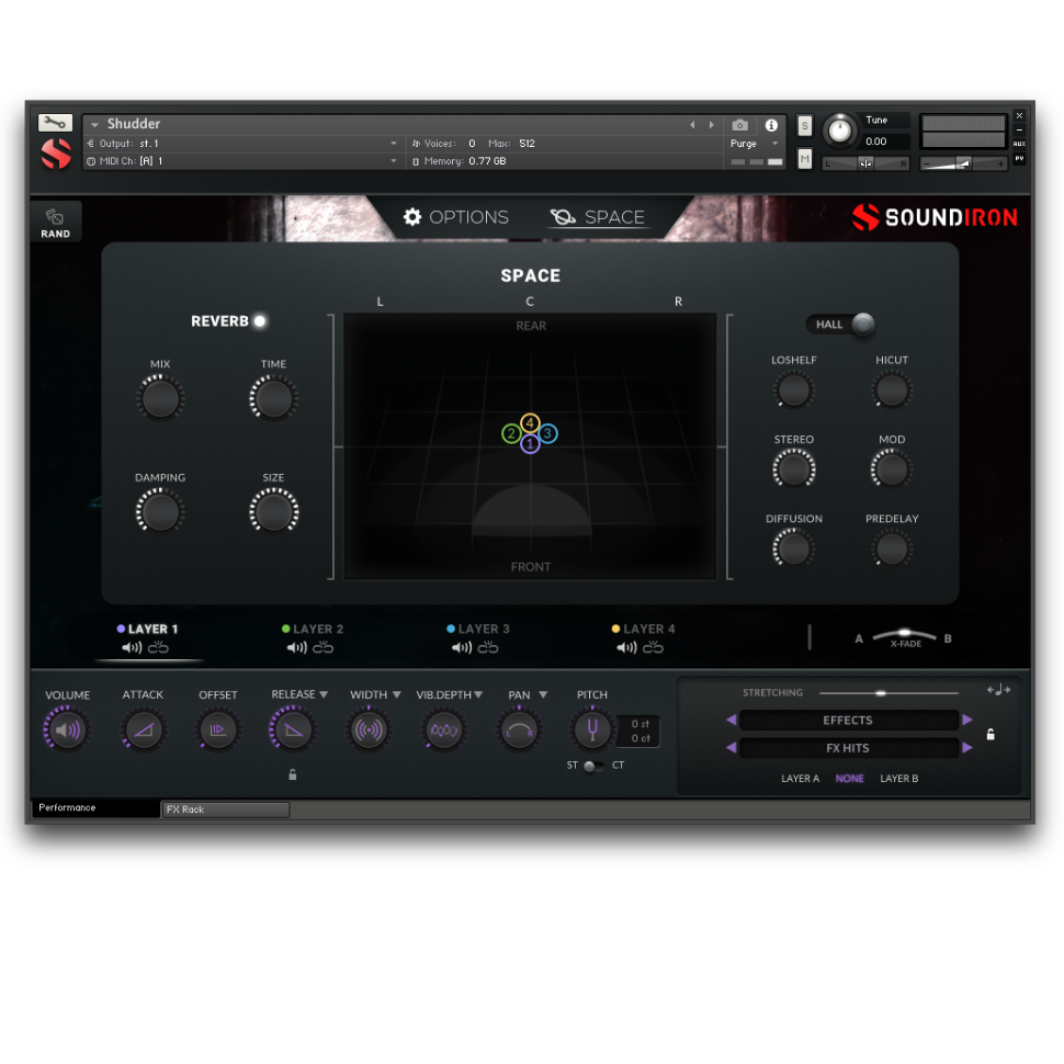 ・FXラック:カスタムルーム、ホール、チャンバー、FX環境を備えたコンボリューション・リバーブを含むフルFXラック