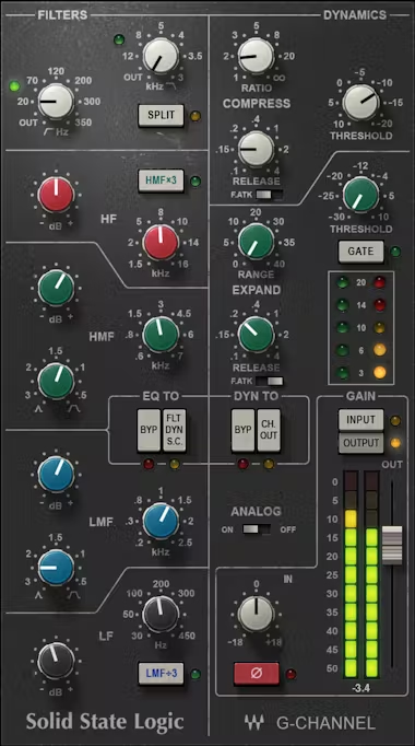 - SSL独自のVCAコンプレッサーとゲートによる卓越したダイナミクス処理