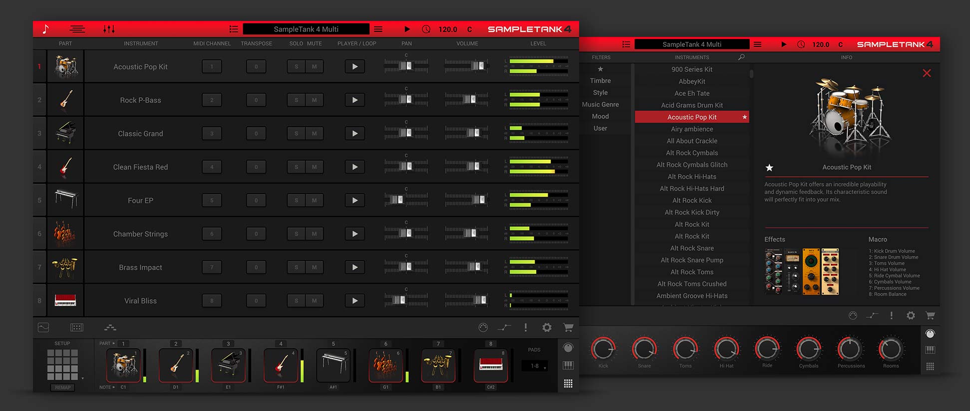 『SampleTank 4 SE』はSampleTank 4本体のフル機能に加え、厳選された2,000種類のインストゥルメントを使用できます。25 GBの新作サウンドを含む合計30 GB以上のライブラリーを収録。