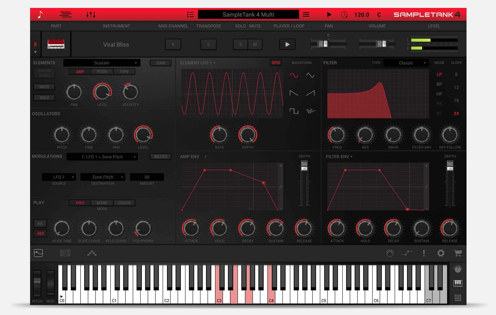 SampleTank 4の高度なレイヤー機能により、リッチで複雑なサウンドが構築できます。