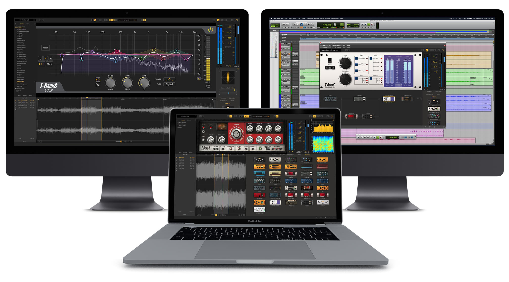 Space Delayは、T-RackS 5モジュールの一員として、他のモジュールと柔軟に組み合わせて使用できます。単体プラグイン、またはT-RackSシェル・プラグインとして、DAW内で他のプロセッサーと組み合わせることも、スタンドアロン版でマスタリング用モジュールの一つとして使用することも可能です。