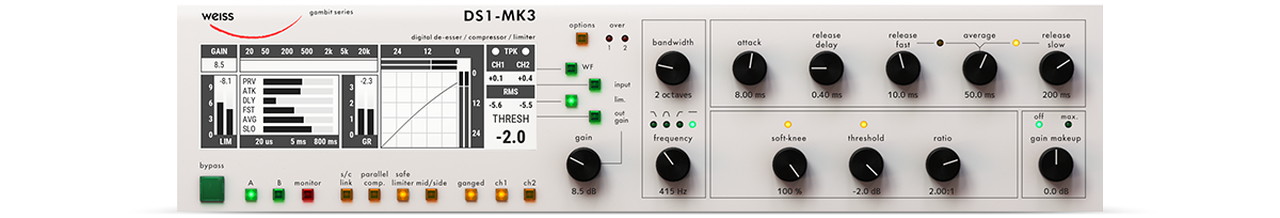 Weiss Compressor/Limiterは、サウンドの主要部を正面から捉え、サウンドを決定づける工程に完璧なまでの機能を提供します。