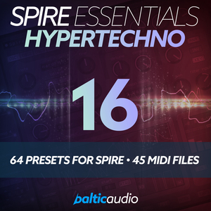 『SPIRE ESSENTIALS VOL 16 - HYPERTECHNO』は、最新のハイパーテクノ・サウンドを手に入れたいプロデューサー必携のプリセット集です。Spire専用に作り込まれた64種類の高品質プリセットを収録し、リード、ベース、プラック、ドラムまで、ヒットトラック制作に必要なサウンドがそろっています。
