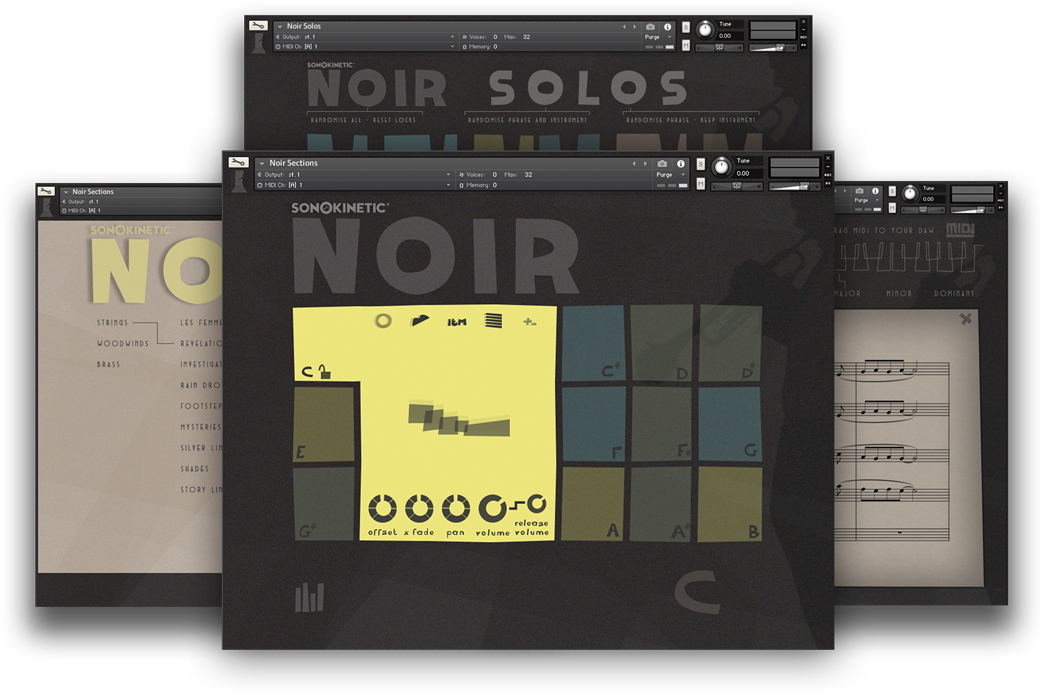 『Noir』は、往年の映画音楽のロマンチックなサウンドや、フィルム・ノワールで用いられるジャズのハーモニーにインスパイアされたKontaktライブラリです。