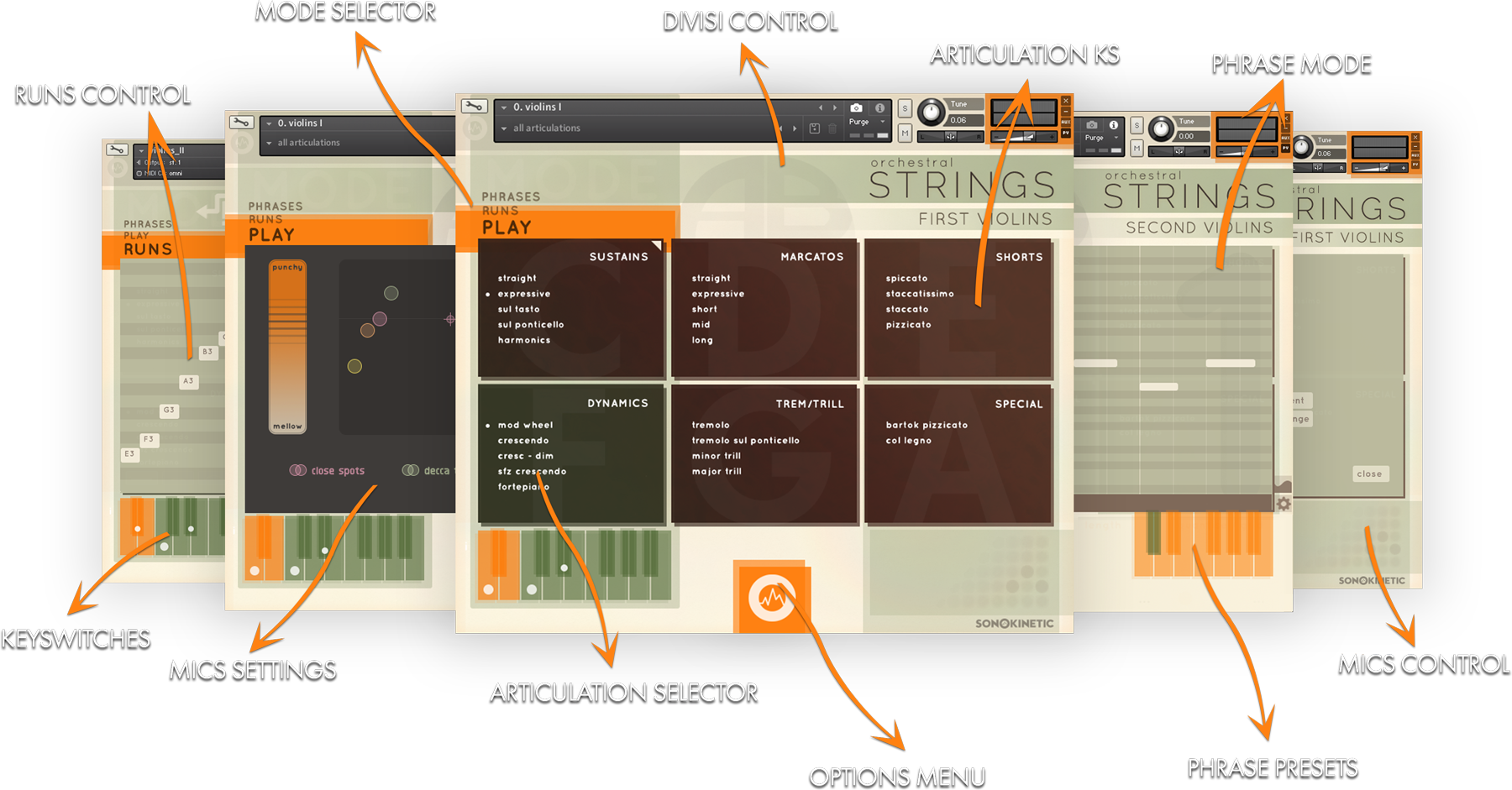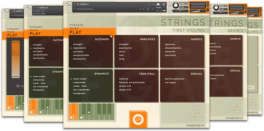 - Sustain (Straight, Expressive, Sul Tasto, Ponticello, Harmonics) ※各種レガート対応