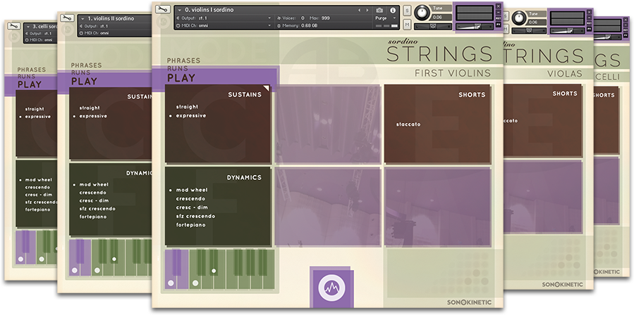 『Sordino Strings』は、ミュートを装着したストリングスの音色を収録した音源です。その名の通り、"Sordino"(弱音器)を装着してレコーディングされたサウンドは、暖かく滑らかで、聴く者を魅了します。