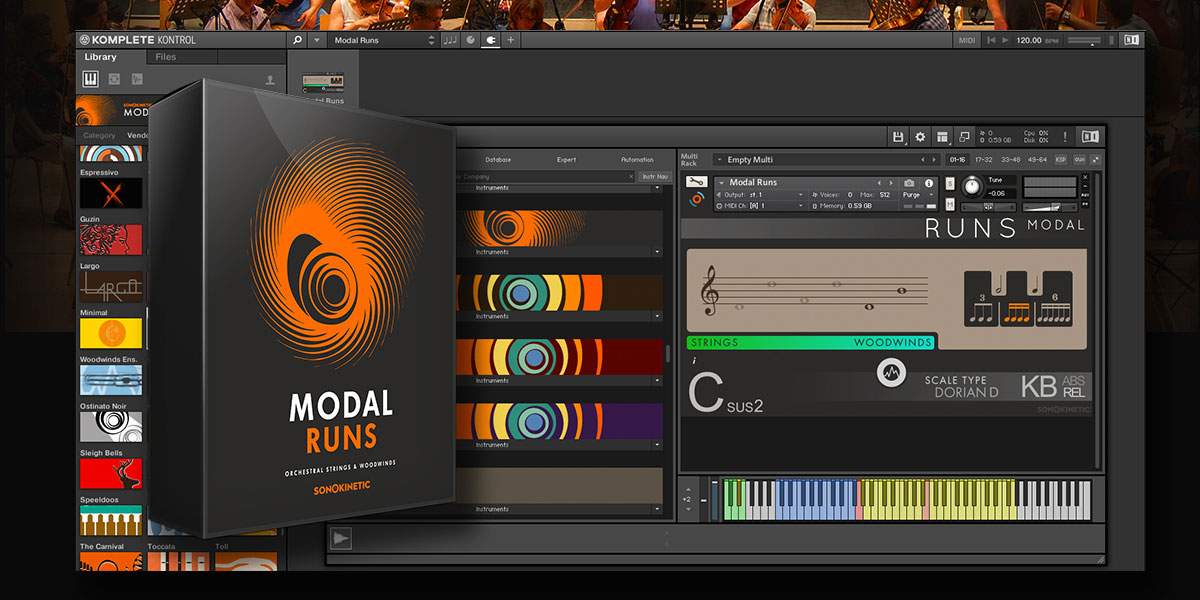 『Modal Runs』は、ストリングスと木管楽器によるスケール・ラン(音階を駆け上がる/駆け下りるフレーズ)を、かつてないほど直感的に演奏できるKontaktライブラリです。従来のマルチサンプル音源でリアルなランを再現するのは難しく、熟練のピアニストでなければ高速な演奏は困難でした。本製品は、誰でも簡単に高速でリアルなランを演奏できるよう制作されています。