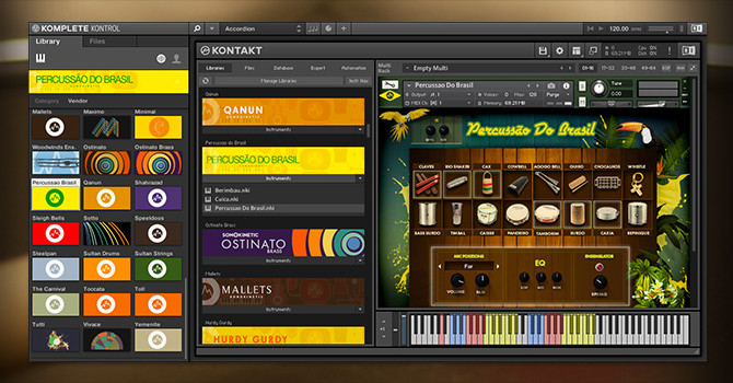 南米、特にブラジル音楽の根幹をなすパーカッション・アンサンブルをKontaktインストゥルメントとして再現するため、オランダの名高いMCOスタジオにて、伝統的なブラジル・パーカッション楽器を幅広く収録しました。