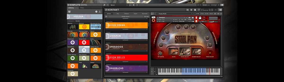 『Steelpan』は、トリニダード・トバゴ共和国で親しまれている打楽器「スティールパン」を収録したKontaktライブラリです。ドラム缶から作られたとは思えないトロピカルな美しい音色を奏でます。