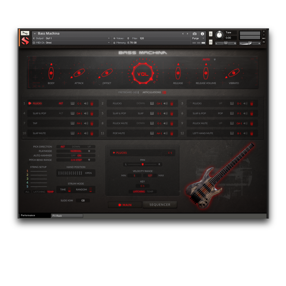 - ピック弾き、タップ、スラップ、ポップ、ミュート、プログラマブルなスライドなどのアーティキュレーション
