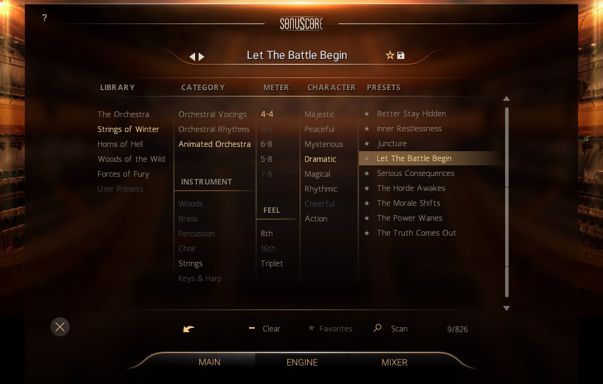 『THE ORCHESTRA COMPLETE 4』は、様々な楽器の組み合わせやアルペジエイター / エンベロープなどのエディットが施されたプリセットを825種類収録。シンプルなコードを、表現豊かなボイシング、推進力のあるリズム、複雑なアニメーション・テクスチャに変え、アイデアに命を吹き込みます。プリセットは、以下の3カテゴリに分類されています。